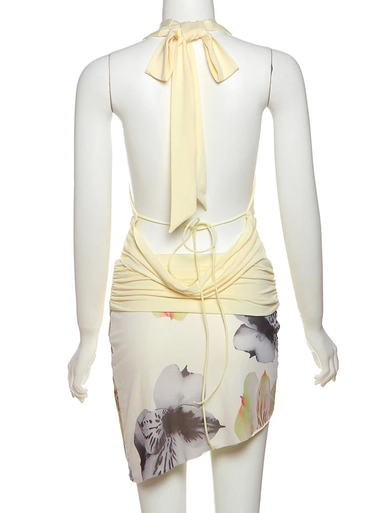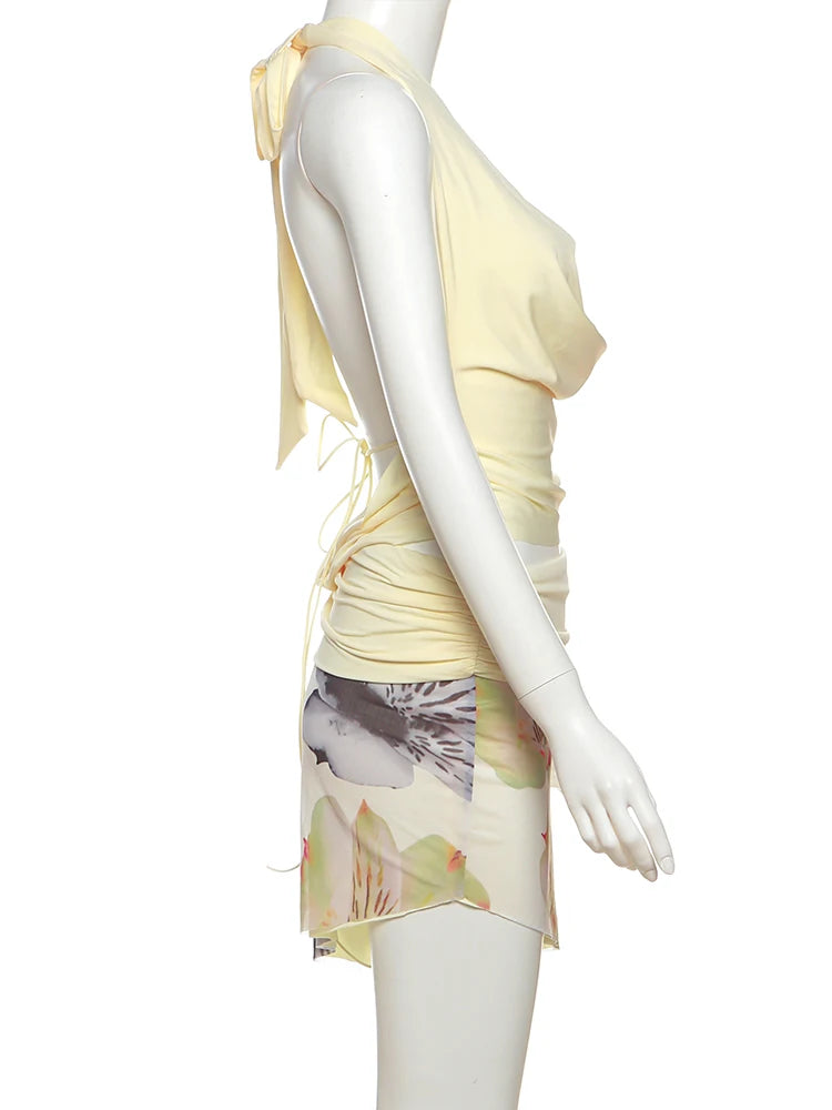 This gorgeous co ord comes with the halterneck yellow top and pastel yellow floral matching skirt.