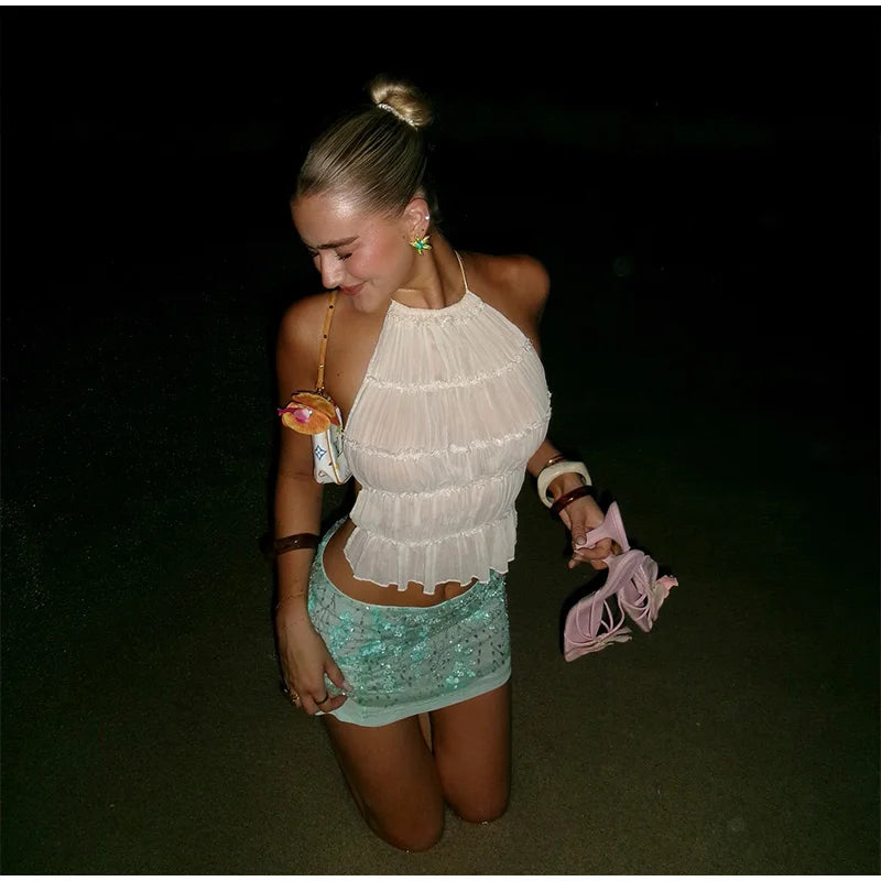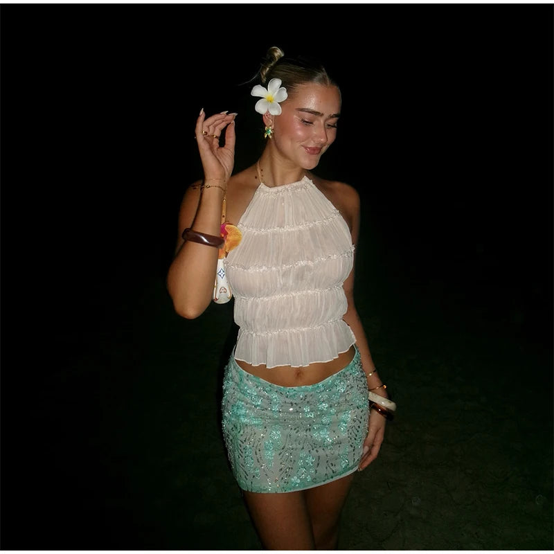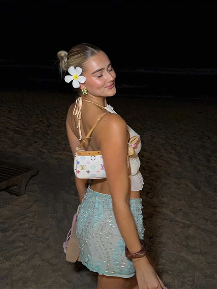 Whether you’re headed to a beach party, festival, or night out, this skirt was made to catch the light (and attention). Pair it with a simple tank or a matching bralette for the ultimate standout look.