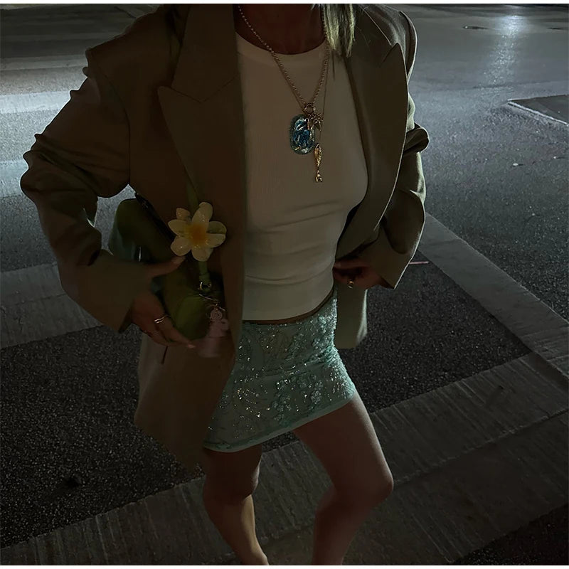 The 'Shakira' Seaglass Sequin Embellished Mini Skirt.